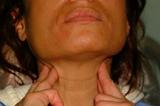 Presione a lo largo de los lados y en la parte frontal del cuello y sienta si hay durezas o bultos. Haga lo mismo en su cara. Normalmente, su cara y su cuello son simétricos, de modo que es posible notar cualquier abultamiento o hinchazón.