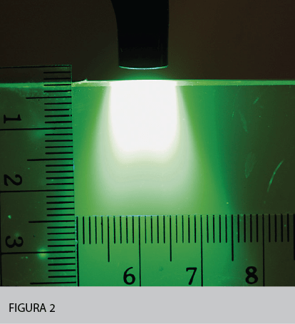 Como fue mencionado anteriormente, las longitudes de onda y el tipo de composite afectan la eficacia de la fotopolimerización. En pocas palabras, se requieren unos 17 J/cm2 a 20J/cm2, lo que equivale a 20 segundos con una energía lumínica de 1.000 mW/cm2 para obtener el grado de polimerización óptima de un composite. Independientemente de la técnica utilizada y el cuidado que ponga el clínico durante el proceso, una irradiación insuficiente puede llevar a una polimerización inadecuada incluso luego de los tiempos de polimerización recomendados. Sabemos que las puntas turbo que canalizan la luz sufren de una pobre energía a la distancia y en algunas situaciones como preparaciones cavitarias muy profundas, polimerización trans-dental, resinas opacas, o la polimerización de cementos de resina a través de restauraciones cerámicas indirectas (carillas, onlays o coronas). Para estos casos, es necesario aumentar el tiempo de polimerización (Figura 2).(13)