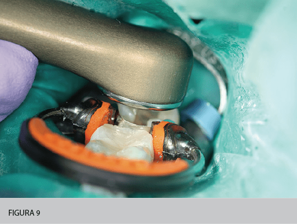 Price y col. demostraron que VALO produce el mayor grado de conversión o polimerización de cualquiera de las lámparas evaluadas.(18)  Un mayor grado de conversión produce mayores valores de dureza. El reducido ángulo de 5º de VALO no sólo asegura un acceso adecuado a la preparación cavitaria sin importar el sector de la boca, también asegura que el ángulo de 90º sea fácilmente mantenido intraoralmente, sobre todo en restauraciones posteriores de Clase II (Figura 9).