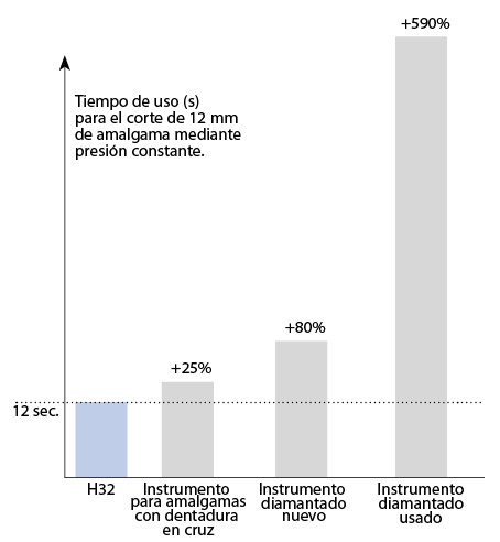 - Se recomienda utilizar una velocidad de 160.000 rpm en el contraángulo. Esta velocidad proporciona la relación óptima entre generación de calor, generación de vapores de mercurio y reducción de material. La H32 puede ser utilizada también en la turbina.