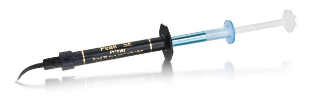 Peak SE Primer es un primer de autograbado dispensado en la exclusiva jeringa JetMix. La tecnología JetMix separa cantidades precisas del ácido fuerte (pH 1.2) y de una resina imprimadora optimizada para prevenir la descomposición y degradación hidrolítica que ocurren con otras formulaciones químicas autograbadoras. Los componentes se mantienen separados hasta que son activados por el clínico. Peak SE Primer se utiliza antes de Peak Universal Bond para lograr fuerzas de adhesión insuperables.