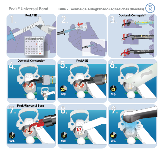 Ideal para todos los procedimientos adhesivos que permitan el acceso de la luz, el sistema Peak SE puede utilizarse también para sellado inmediato de dentina previo a impresiones y colocación de provisionales para disminuir la sensibilidad postoperatoria y la derivada del cementado. Excelente para adherir carillas estéticas.