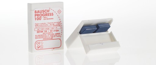 Este papel flexible y reforzado con fibras, con una reserva de color de gran volumen, se adapta perfectamente a la superficie oclusal. Con su coloración progresiva señala con precisión los puntos oclusales de contacto o los contactos en oclusión céntrica.