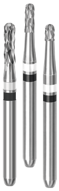 Otra característica distinta es el filo transversal en la parte frontal del instrumento, permitiendo una fácil penetración en el material a ser tratado. La geometría de corte especial con puntas de corte piramidales evita que los filos se despuntan fácilmente, garantizando una alta estabilidad del instrumento, una alta resistencia a la rotura y una operación suave sin vibraciones. En comparación con todos los otros instrumentos para separar coronas en el mercado, inclusive las copias de los competidores, los instrumentos H4MC (longitud de su parte activa: 2 mm) y H4MCL (longitud de su parte activa: 3,5 mm) aseguran un tallado constantemente elevado durante un largo tiempo. Son extremamente eficientes especialmente en caso de aleaciones de metales no preciosos, como p. ej. Dentitan, que son difíciles a tallar. Los instrumentos pueden ser utilizados en el micromotor o en la turbina.