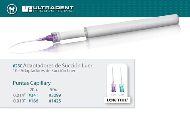 Remueva eficientemente soluciones irrigadoras y residuos con el Adaptador de Succión Luer y puntas Capillary Tip de Ultradent