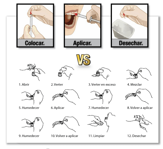 Higiene: no se precisan ni losetas ni vasos dappen, ni aplicadores adicionales. Esto minimiza los procedimientos de limpieza y los desechos.