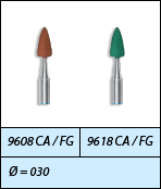 Alta eficacia en pulido de metales (amalgama, aleaciones de metales preciosos y no preciosos). Usar con refrigeración de agua.