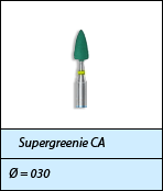 Supergreenie es un pulidor impregnado en silicona. Proporciona altísimo brillo en amalgamas, metales preciosos y no preciosos. Rpm óptimas: 5.000 – 7.000