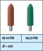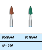 Pulido de superficies oclusales y zonas de difícil acceso. Para aleaciones de metales preciosos, no preciosos y modelos colados.